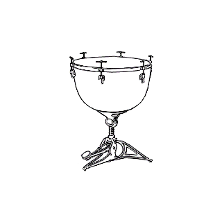 打击乐器。形状像锅,用铜制成,在开口的一面蒙皮,装有螺旋,能松紧鼓面来调整音高。主要用於交响乐队。