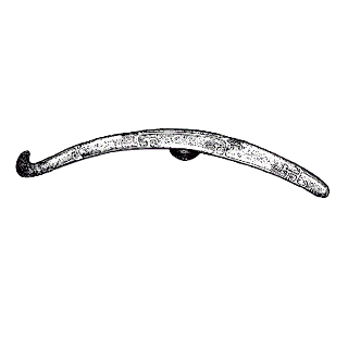 束腰革带上的钩。一端曲首,背有圆钮。或作动物形,或铸有花纹,不一。多用铜制,亦有用铁或玉等制作者。