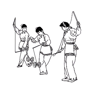 传统杂技节目。也叫抖空钟,南方也叫「扯铃」。表演时用两根短竿,系上绳子,将空竹(也有用壶盖或酒瓶)扯动使之旋转,并表演出各种身段。