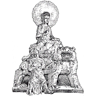 的省称。意译爲「妙吉祥」、「妙德」等。其形顶结五髻,象徵