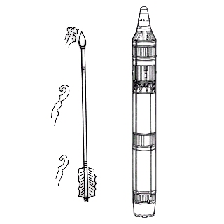 现代利用反冲力推进的飞行装置。用以发射人造卫星、人造行星、宇宙飞船等,也可装上弹头制成导弹。在一般用语中,火箭也作爲火箭发动机的简称。