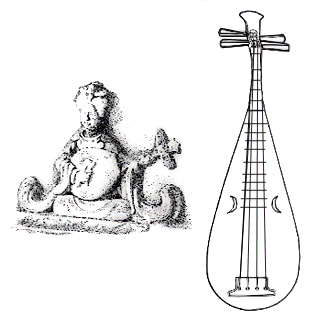 《文选・左思<吴都赋>》:「於是乎长鲸吞航,修鲵吐浪,跃龙腾蛇,鲛鲻琵琶。」 刘逵注:「琵琶鱼,无鳞,其形似琵琶,东海有之。」 南朝 梁 任昉《述异记》卷上:「海鱼千岁爲剑鱼,一名琵琶,形似琵琶而善鸣,因以名焉。」 弹琵琶(五代浮雕) / 清代琵琶 |
