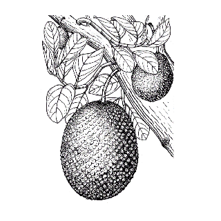 即木波罗。通称波罗蜜树。常绿乔木。果椭圆形,味甜,可食。原产