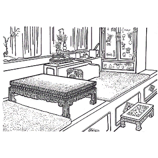 《老残游记》第九回:「当中一个正方炕桌,桌子三面好坐人的。」