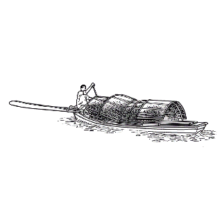 一种小木船,船篷是半圆形的,用竹片编成,中间夹竹箬,上涂黑油。