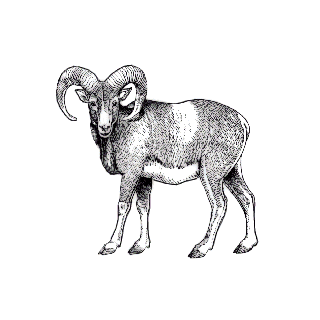 羊的一种。角向下盘曲呈螺旋形,毛厚而长,棕灰色,尾短,四肢强劲,能爬高山。野生於