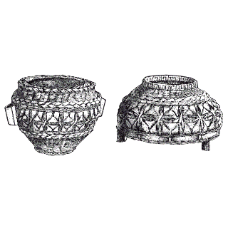 用竹篾编成的圆柱形盛器。