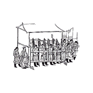 宫庙、官府及显贵之府第陈戟於门前,以爲仪仗。