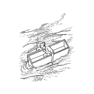 高原地带急流河道中用树枝作骨架、外蒙氂牛皮的船。