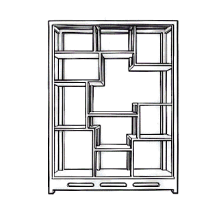 一种陈设橱,中分几个不同样式的层、格,可摆设各种器皿、古董、盆景等。