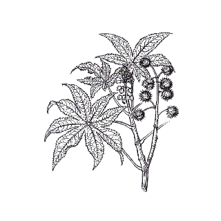 一年或多年生草本植物。茎圆形,中空,叶大,互生,掌状分裂。雌花淡红色,雄花呈淡黄色。种子椭圆形,作油料,油脂可制润滑油、媒染剂,亦可供药用。叶可饲养蓖麻蚕。茎的韧皮纤维可制绳索和纸。