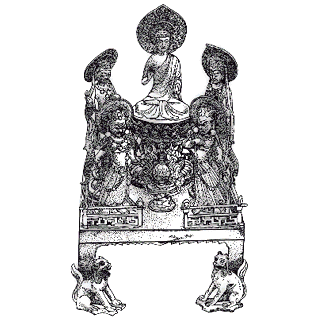 《醒世恒言・一文钱小隙造奇冤》:「﹝田婆﹞吓得蹲倒在地,便立不起身。口中念声:『阿弥陀佛!青天白日,怎做这事!』」 鲁迅《彷徨・祝福》:「他们一不小心,一松手,阿呀,阿弥陀佛,她就一头撞在香案角上,头上碰了一个大窟窿,鲜血直流。」亦省作「阿弥陀」。 郭沫若《咏邱少云烈士》:「高地名传『三九一』,寇军徒念阿弥陀。」 阿弥陀佛铜坐像(西安南郊隋代遗址) |