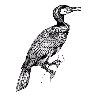 北齐 颜之推《稽圣赋》:「鼋鳖伏乎其阴,鸬鹚孕乎其口。」 唐 杜甫《田舍》诗:「鸬鹚西日照,晒翅满鱼梁。」 明 李时珍《本草纲目・禽一・鸬鹚》:「鸬鹚,处处水乡有之。似鶂而小,色黑。亦如鸦,而长喙微曲,善没水取鱼,日集洲渚,夜巢林木,久则粪毒多令木枯也。南方渔舟往往縻畜数十,令其捕鱼。」 鸬鹚 |