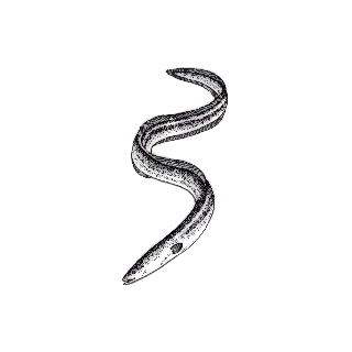 鳗鱼。又名白鳝、白鳗。鱼纲鳗鱼科。身体长形,前部近圆筒形,後部侧扁。表面多黏液,上部灰黑色,下部白色,鳞细小,埋在皮肤下面。头尖,口大而宽阔,背鳍、臀鳍和尾鳍连在一起,无腹鳍。生活在淡水中,成熟後到海洋中产卵。捕食小动物。肉味鲜美。