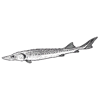 1 鱼纲鲟科。体延长,亚圆筒形。体色青黄,腹白,背部及腹部具五纵行大型骨板。口小,吻尖长,左右鳃膜不相连。尾鳍不正。淡水定居,或淡海洄游。生殖期溯江上游产卵。卵、肉均爲富有营养的美味珍品。我国产有中华鲟、达氏鲟、黑龙江鲟等。分布於沿海及南北各大水域。