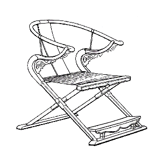 坐具。腿交叉,有靠背,能摺叠。古时称「胡床」、「交床」,後世称「太师椅」。