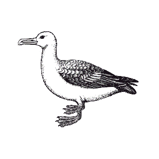 大型海鸟。身体白色略带青色,长约二三尺,体形大的种类长可达一米以上,翅淡黑色,趾间有蹼,善飞能泳,食水生动物,见於我国沿海各地。古人见其凝立水际,或谓其不能捕鱼,常用以比喻呆立或留居原地少活动。
