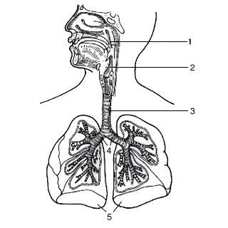 呼吸系统(1.咽 2.喉 3.气管 4.左、右支气管 5.左、右肺)