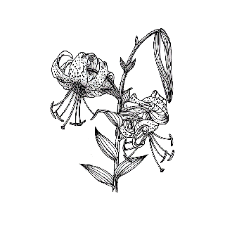 百合科。多年生草本。叶披针形。花下垂,橘红色,上有紫黑色斑点,向外反卷,故名。我国