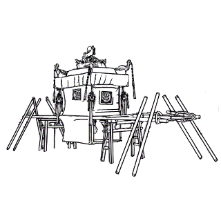 即花轿。女子出嫁时乘坐。