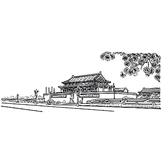 八年重修,改称「天安门」。在高大的朱红城墙上开有五个拱形门,城上有九开间的歇山式重檐城楼,红柱黄瓦。前後各立华表一对。门前有金水河,跨河有汉白玉石桥五座。桥前爲天安门广场。天安门城楼壮丽雄伟,爲全国重点文物保护单位。它的庄严肃穆的图形是我国国徽的主要组成部分。1949年10月1日