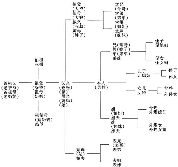 (1)1.本表分列父系、母系、夫系、妇系四种亲族关系。2.括号中除“本人”下的注性别外,其他为习见称呼。(一)父系 (二)母系 (三)夫系 (四)妇系