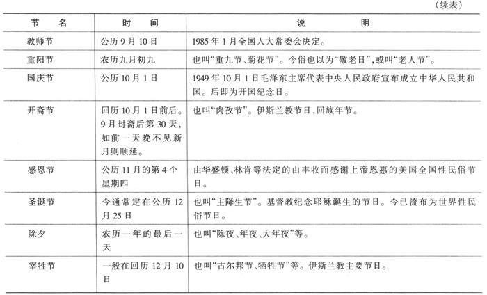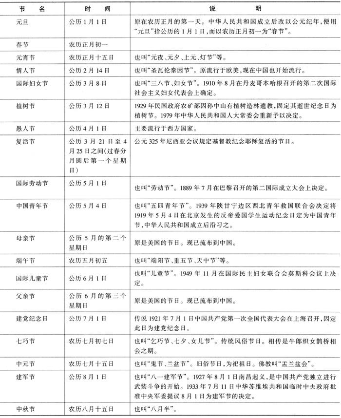 中外重要节日简表