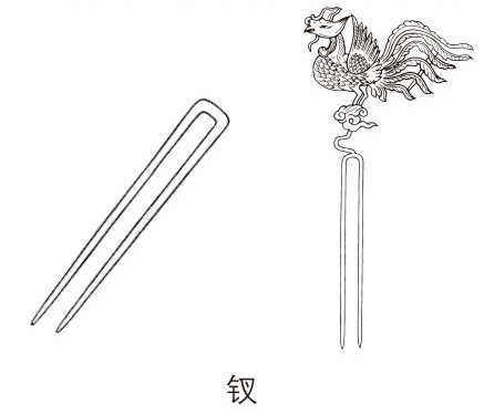 旧时妇女别在发髻上的一种首饰,由两股簪子合成: