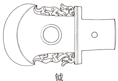 古代兵器,青铜或铁制成,形状像板斧而较大。