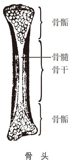 人和脊椎动物体内支持身体、保护内脏的坚硬组织,主要成分是碳酸钙和磷酸钙。根据形状的不同,分为长骨、短骨、扁骨等。