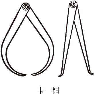 用来测量或比较作件内外直径或两端距离的量具。两个脚可以开合,开口的尺寸可用另外的钢尺量出。