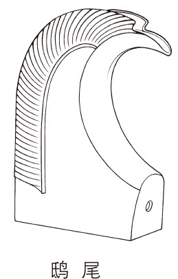 中式房屋屋脊两端的陶制装饰物,形状略像鸱的尾巴。