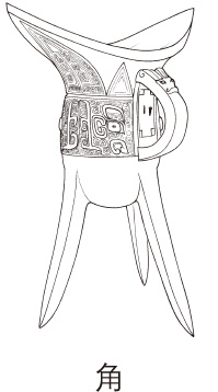 角1jiǎo❶ 名牛、羊、鹿等头上长出的坚硬的东西,一般细长而弯曲,上端较尖:牛~|鹿~|两只~。❷ 古时军中吹的乐器:号~。❸ 形状像角的东西:皂~|菱~。❹ 岬角(多用于地名):成山~(在山东)|镇海~(在福建)。❺ (~儿)名物体两个边沿相接的地方;角落:桌子~儿|墙~儿|拐~儿|东南~◇英语~。❻ 名从一个点引出两条射线所形成的平面图形;从一条直线上展开的两个平面或从一点上展开的多个平面所形成的立体图形:直~|锐~|两面~|多面~。❼ 量用于从整体划分成的角形东西:一~饼。❽ 量我国货币的辅助单位,10角等于1元。❾ 二十八宿之一。角2jiǎo旧同“饺”。 另见jué。 词语 角尺角度角钢角弓反张角果角楼角落角门角膜角票角球角质 角1jué(~儿)❶ 名角色:主~|配~|他在这出戏里扮演哪个~儿?❷ 行当②:丑~|旦~。❸ 名演员:名~。角2jué竞赛;斗争:~斗|口~。角3jué古代盛酒的器具,形状像爵,但口沿上没有小柱。(见图)参看“爵2”。 角4jué古代五音之一,相当于简谱的“3”。参看〖五音〗。角5Jué名姓。 另见jiǎo。词语 角斗角力角色角逐 |