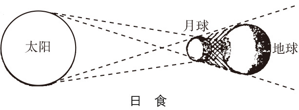 月球运行到地球和太阳的中间时,太阳光被月球挡住,不能射到地球上来,这种现象叫日食。太阳光全部被月球挡住时叫日全食,部分被挡住时叫日偏食,中央部分被挡住时叫日环食。日食都发生在农历初一。