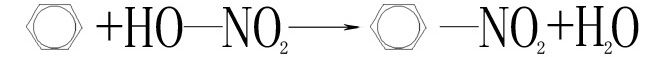 有机化合物分子中的氢原子被硝基取代的反应。如在一定条件下,苯与浓硝酸的反应: